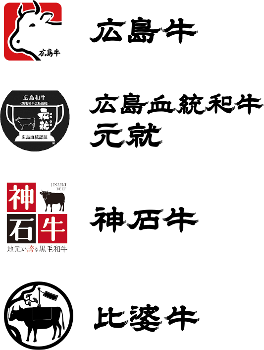 【廣島和牛】由四款個性鮮明的品牌和牛組成:承襲元就公繁盛血脈的「廣島血統和牛 元就」、兼具廣島和牛卓越潛力的「廣島牛」、專注於「蔓牛」血統的稀有品種「比婆牛」與「神石牛」。